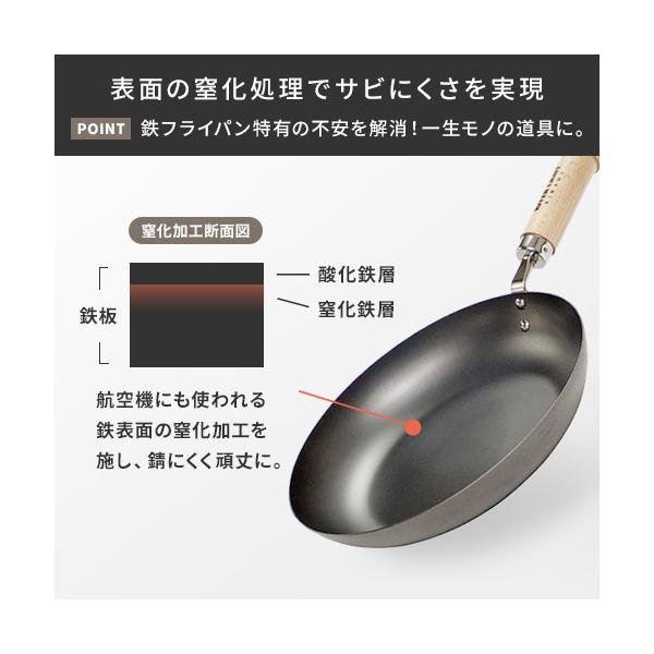 特殊(窒化)熱処理した鉄の表面は、極めてサビにくく、大変丈夫でキズにも強く、面倒だったお手入れが簡単になりました。