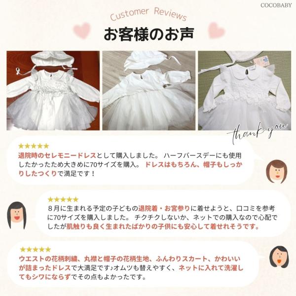 セレモニードレス 新生児 女の子 退院着 お宮参り 結婚式 お食い初め ホワイト 綿 長袖 50 60 70 80 ベビー 1歳 誕生日 ワンピース 帽子