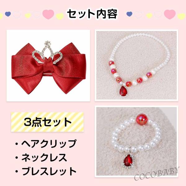 子供 アクセサリー 3点セット プリンセスドレス キッズ ブレスレット ネックレス ヘアークリップ ハロウィン仮装 クリスマス 誕生日 3歳 4歳 5歳 6歳 cocobaby