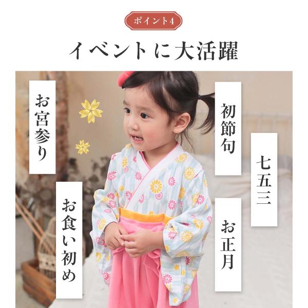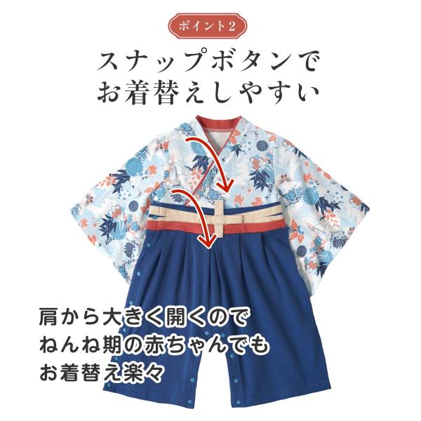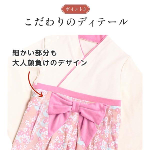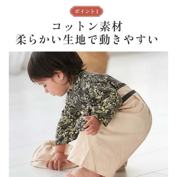 お宮参り ひな祭り 百日祝い お食い初め お正月 初節句 七五三 端午の節句 桃の節句 初詣 など、赤ちゃんの祝い事に活躍する 和服 和風 袴ロンパース。