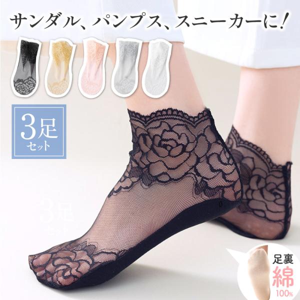 シースルー 靴下 レディース 夏 レースソックス 3足セット 夏用 シアー フットカバー かわいい メッシュ 涼しい ショート 速乾 短い 蒸れない パンプス