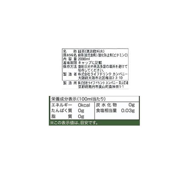【商品説明】味わい豊かな緑茶の旨みとさわやかなのどごし【仕様】●原材料:緑茶(国産)、ビタミンC●内容量:2L●注文単位:1セット(6本×2箱) rs_01 BBB_0 5offcp_03