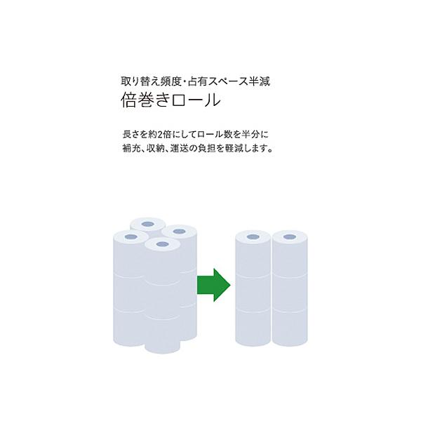 【商品説明】6ロールで12ロール分。取り替えの手間も半分、保管スペースも半分。【仕様】●仕様:ダブル、倍巻き●芯径:38mm●寸法:幅107mm×長さ2枚重ね60m●牛乳パックリサイクルパルプ使用●日本製●ミシン目入り●注文単位:1箱(6ロール×8パック) BBB_0