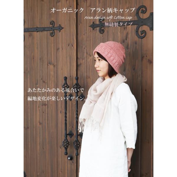 医療用帽子 秋冬用 オーガニックアラン柄キャップ 無縫製 日本製 メンズ レディース 抗がん剤副作用 脱毛 手術後用ケア帽子