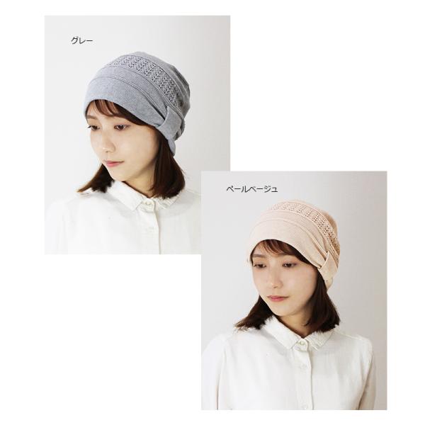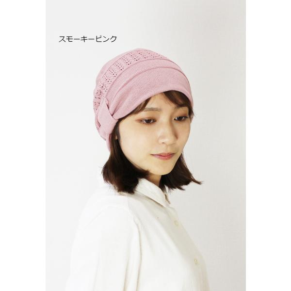 医療用帽子 秋冬春用 オーガニック ラフニットレース柄キャップ 日本製 レディース 抗がん剤副作用 脱毛 手術後用ケア帽子