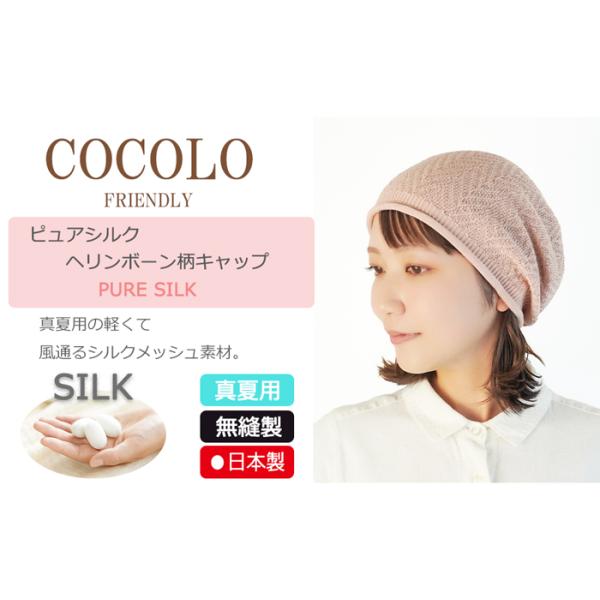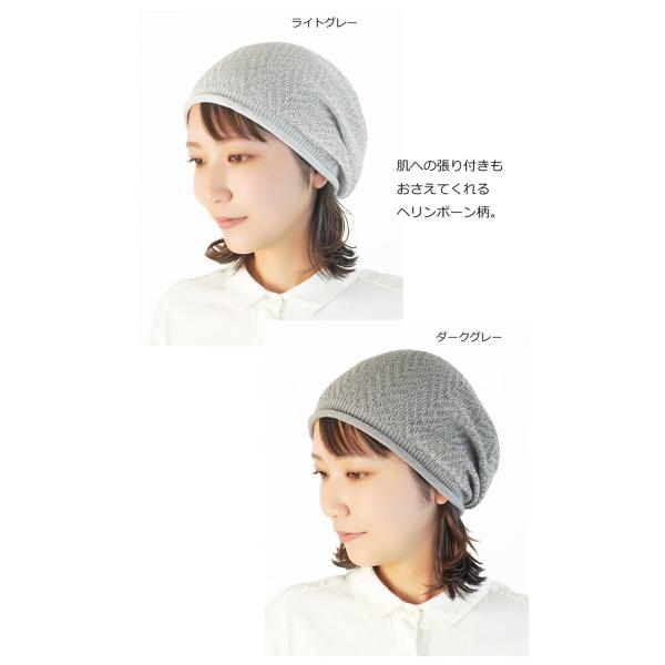 【新商品】医療用帽子 【薄手】ピュアシルク ヘリンボーン柄キャップ 無縫製 日本製 ナイトキャップ メンズ レディース 抗がん剤帽子 脱毛 白髪 薄毛