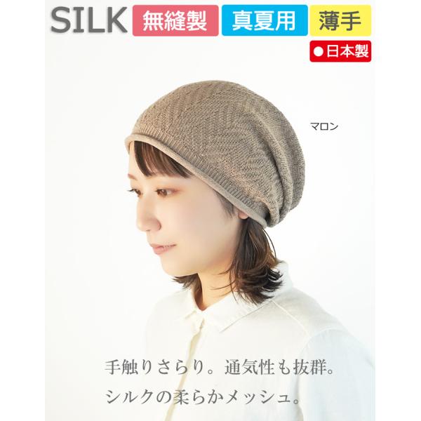 天然シルクメッシュ無縫製インナーキャップ【さらさら薄手】【洗えるシルク】【日本製】【消臭】【メール便送料無料】医療用帽子 医療用ウィッグ