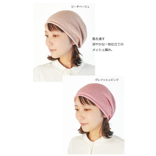 医療用帽子 春夏秋用 オーガニック サイドアップ編み柄キャップ【無縫製】 日本製 抗がん剤帽子 脱毛 手術後用 ケア帽子 白髪隠し