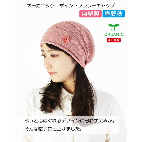 【新発売】医療用帽子 春夏秋用 オーガニック ポイントフラワーキャップ 無縫製 日本製 レディース 抗がん剤 脱毛 手術後用ケア帽子 薄毛隠し 寝ぐせ隠し