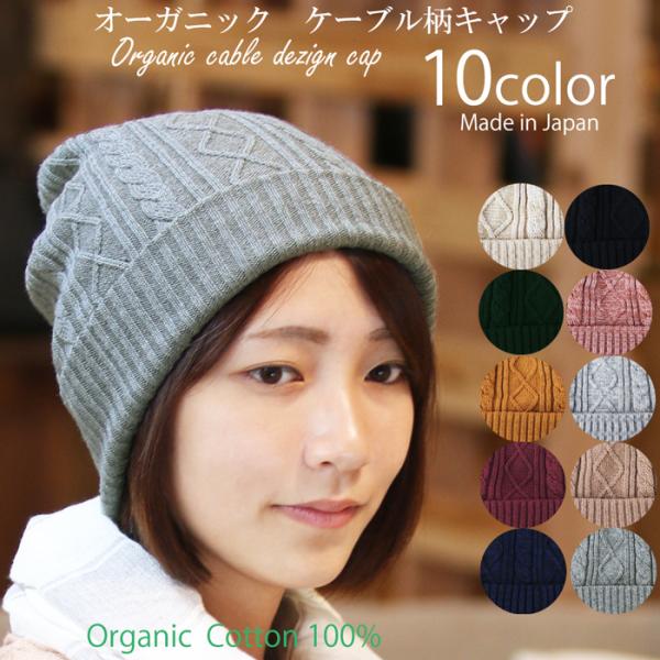 医療用帽子 秋冬用 オーガニックケーブル柄キャップ 無縫製 日本製 メンズ レディース 抗がん剤帽子 脱毛 手術後用ケア帽子