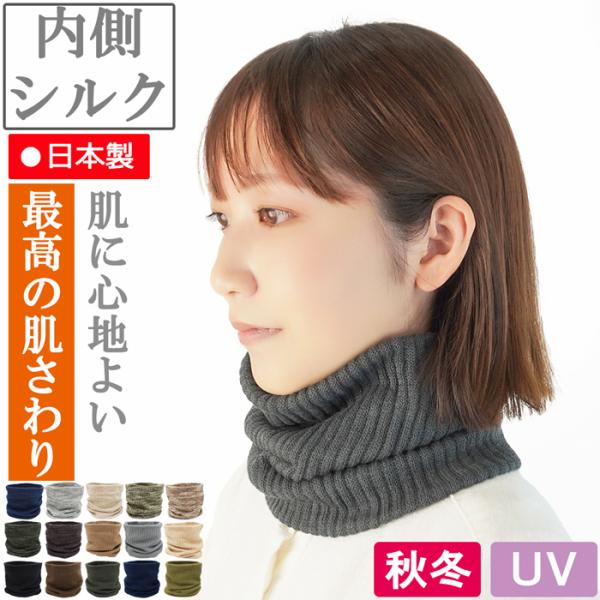 【新商品】ネックウォーマー 内側シルク100%【二重リブ編み】表側オーガニックコットン100%【日本製】【メール便送料無料】 通勤用 お洒落 爆買