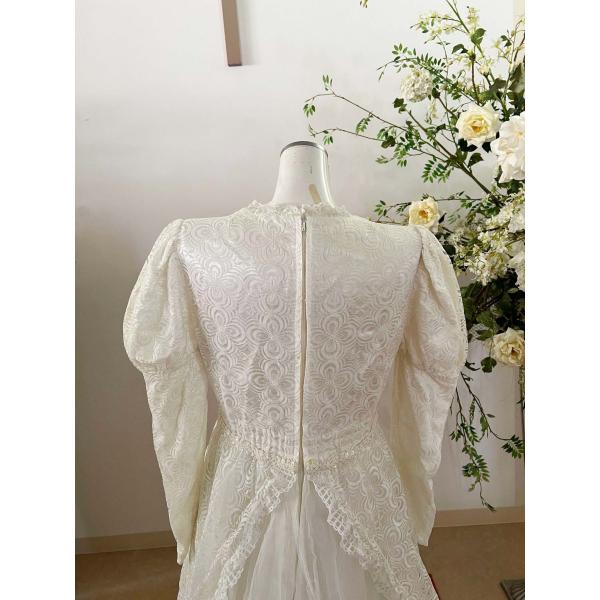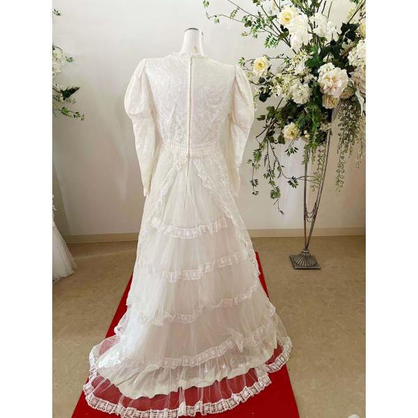 ロングドレス 白クリーム色 後フリル 少しだけ十レーン