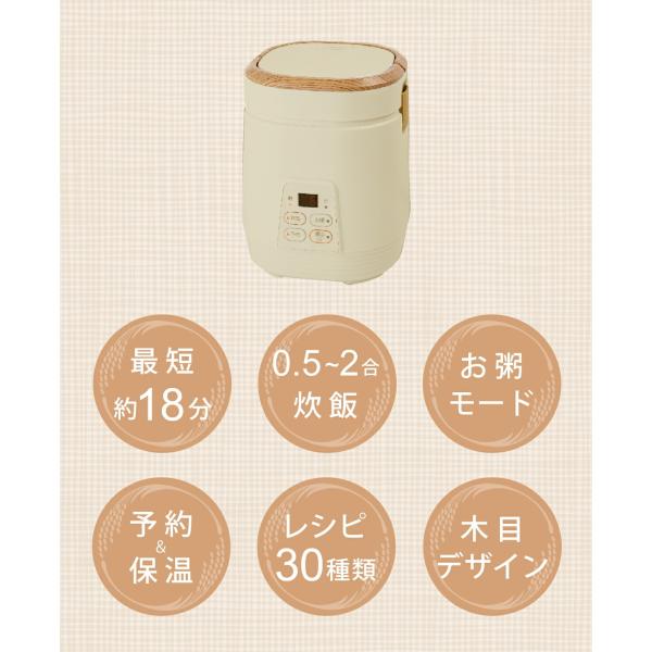 [訳あり]アルコレ ミニライスクッカー ミニ炊飯器 0.5〜2合 木目・ベージュ 1合 炊飯 かわいい コンパクト 省スペース 在庫限り 在庫処分 ARCT2001C|