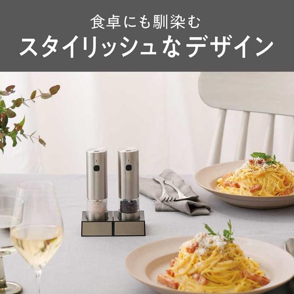 送料無料 [25年5月発売]コイズミ 充電式 電動ミル KPM-0200/S ペッパー ソルト ミル 塩 胡椒 粗さ調整 ギフト ステンレス おすすめ おしゃれ 台座付 KPM0200S||