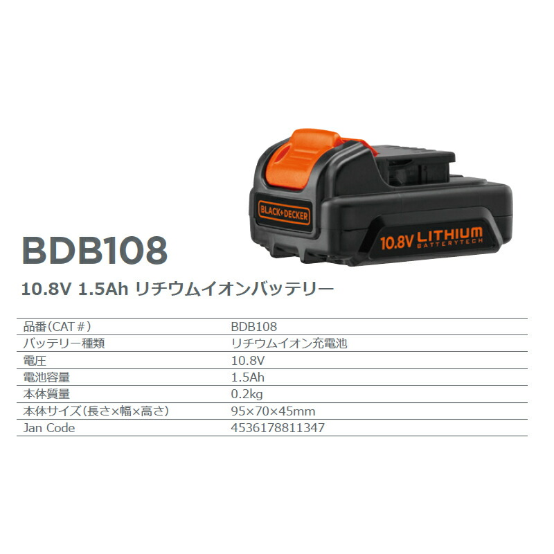ブラック・アンド・デッカー(BLACK+DECKER) 10.8V 1.5Ah リチウムイオンバッテリー 正規品 BDB108 4536178811347 純正充電池 ブラックアンドデッカー BDB108.|||