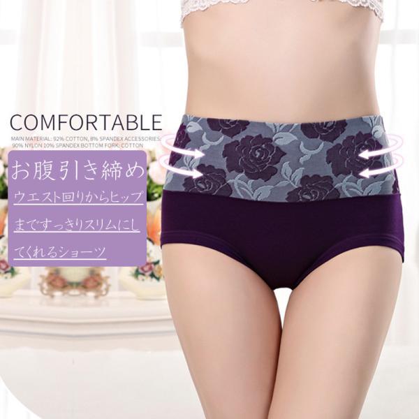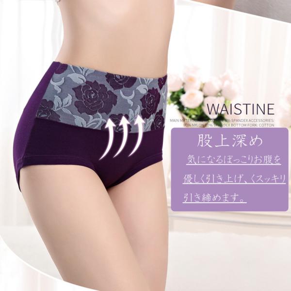 バラ模様 ショーツ レディース 綿 深め 深履き 女性 インナー パンツ 下着 伸縮性 フィット感 ハイウエスト