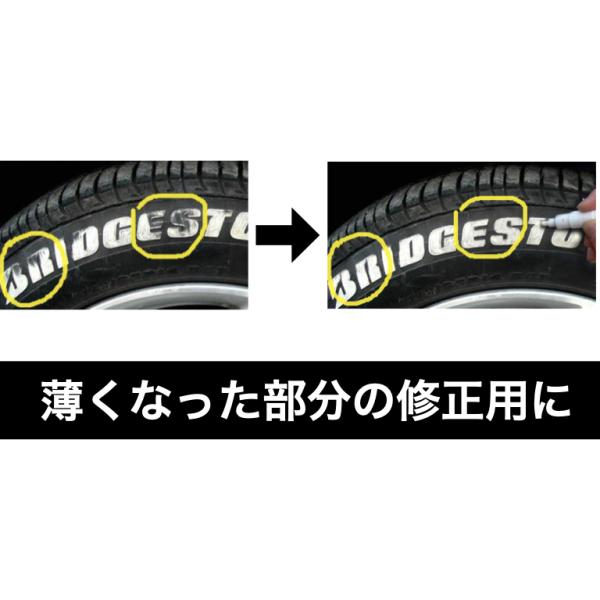 (4)問題なければ、タイヤのロゴなどを縁取るようにペイントします。使用後はペンをしっかりキャップしてください。