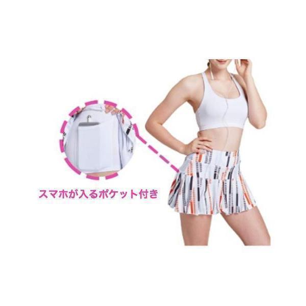 スコート テニスウェア スパッツ一体型 ポケット付き プリーツ バドミントン テニス 長め ホワイト テニススカート 白 卓球 ヨガ ジュニア