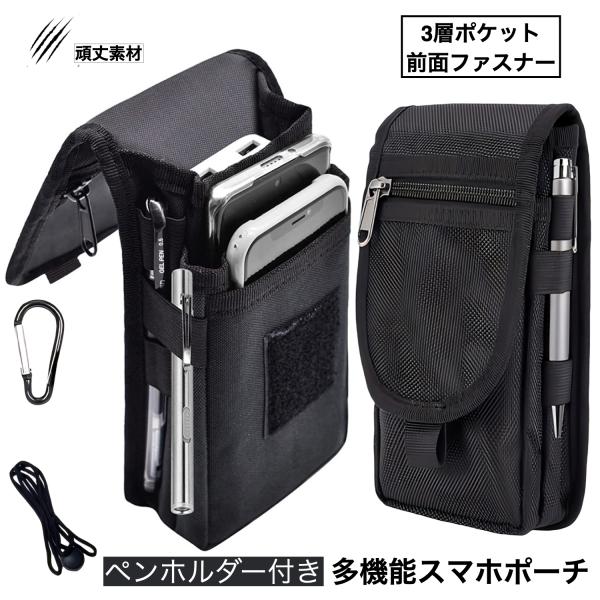 スマホポーチ カラビナ付き ベルトポーチ ベルトケース ベルト通し 携帯ポーチ メンズ スマホホルダー ペンホルダー 携帯電話ポーチ