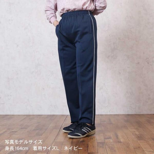 シンプルなサイドラインが入ったレディースジャージパンツ。