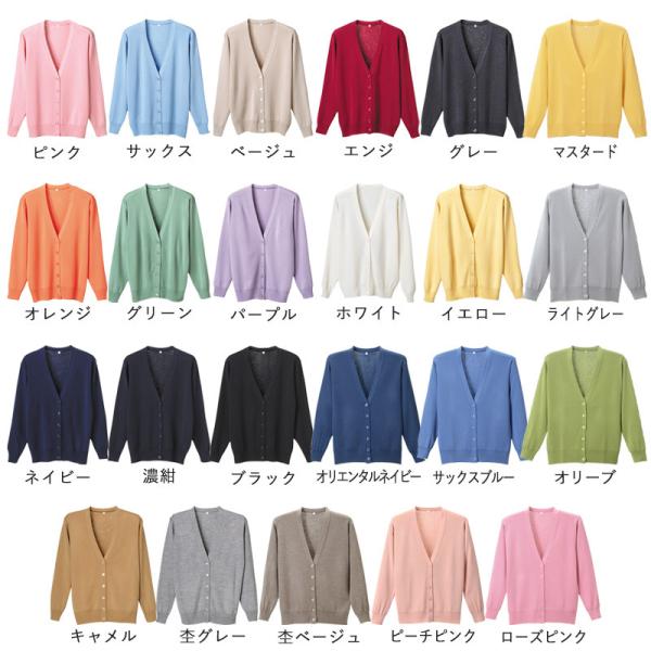 選べるきれいなカラーバリエーション23色が自慢の日本製カーディガン。