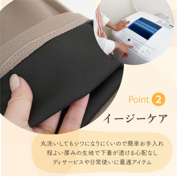 ●裏側にはさらっとした手触りの裏地を貼り合わせ、適度な厚みがあるから足のラインを拾いにくい安心の履き心地。