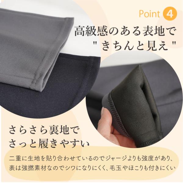 ●表も裏もさらりとしたストレッチ生地で、高級感がありながら毛玉やほこりが付きにくい素材です。とにかく軽く、これまでになかった履き心地。