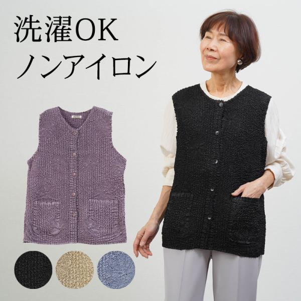 シニアファッション 80代 70代 60代 高齢者 婦人服 ベスト レディース シニア 服 おばあちゃん 母 誕生日 プレゼント 女性 プリーツ前開きベスト