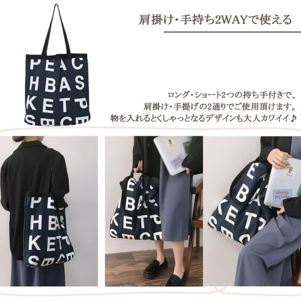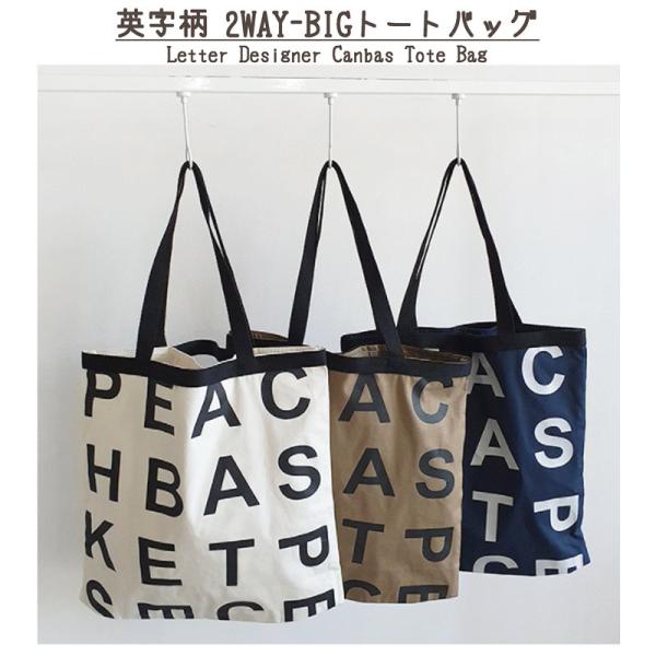 【SALE】【メール便送料無料】2WAY 英字 トートバッグ 大容量 キャンバス 大きめ BIG アルファベット 肩掛け ショルダー エコバッグ マルシェバッグ 折りたたみ