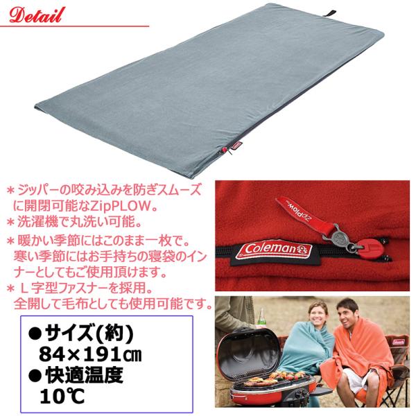 ★Coleman 洗える フリース 寝袋★コールマン 封筒型 コンパクト インナーシュラフ 大人用 スリーピングバッグ 10℃ 毛布 ブランケット 防災用品