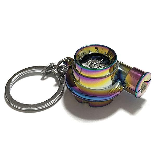 キーホルダー ターボ タービン音付き LED アクセサリー 自転車 車 バイク 家 鍵 ストラップ レインボー