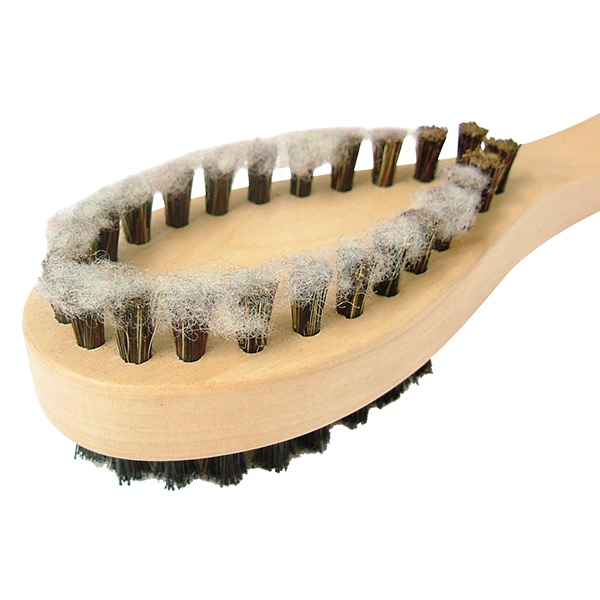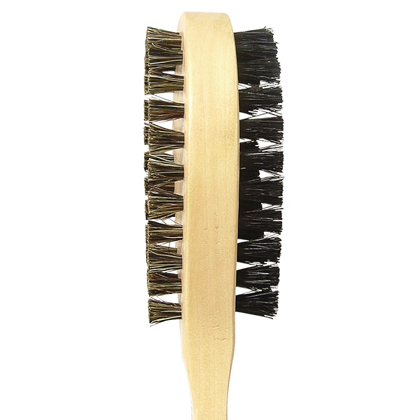 ●かためブラシ(猪毛)で毛玉を取り、仕上げ用のやわらかブラシ(豚毛)で生地をきれいに整えられる1本2役です。
