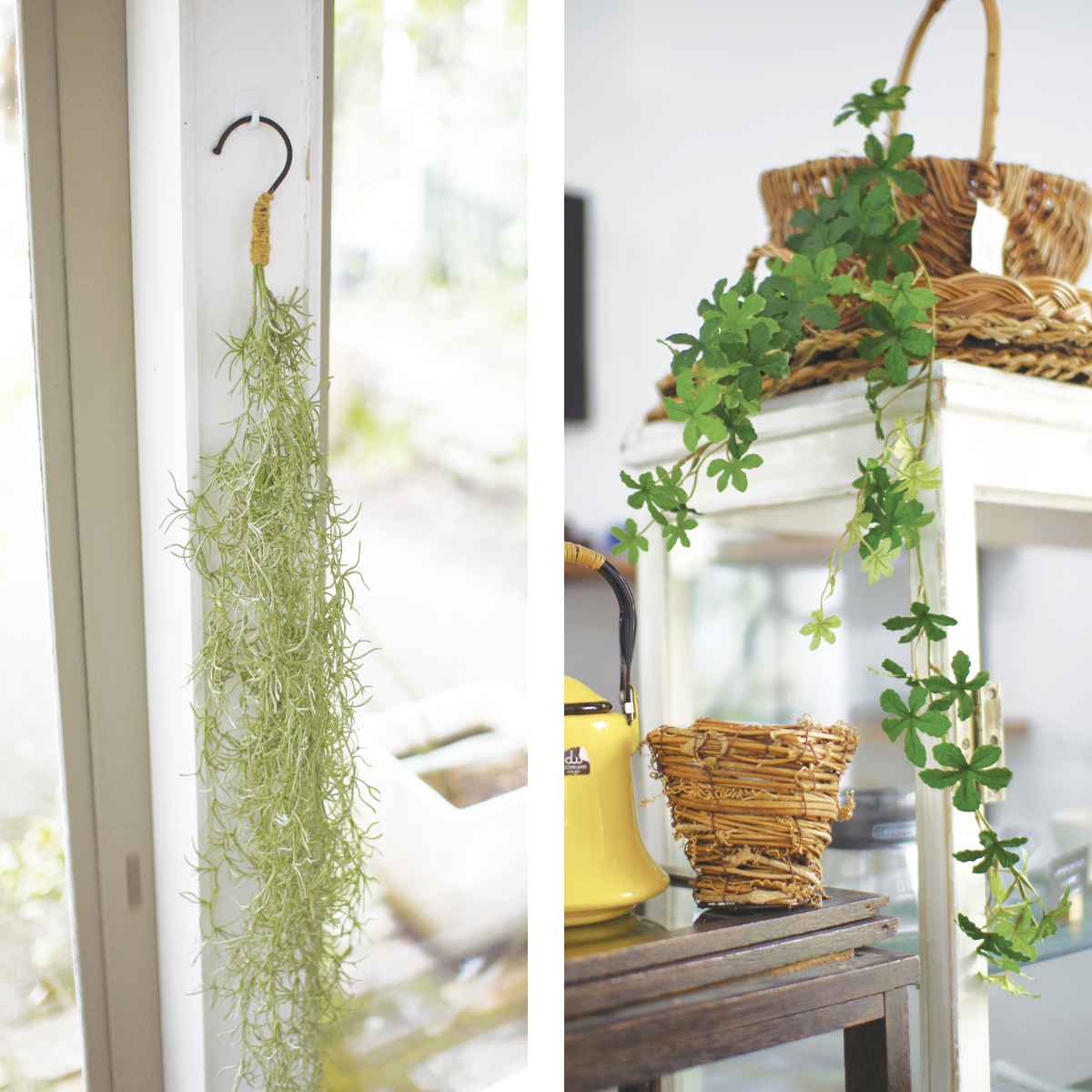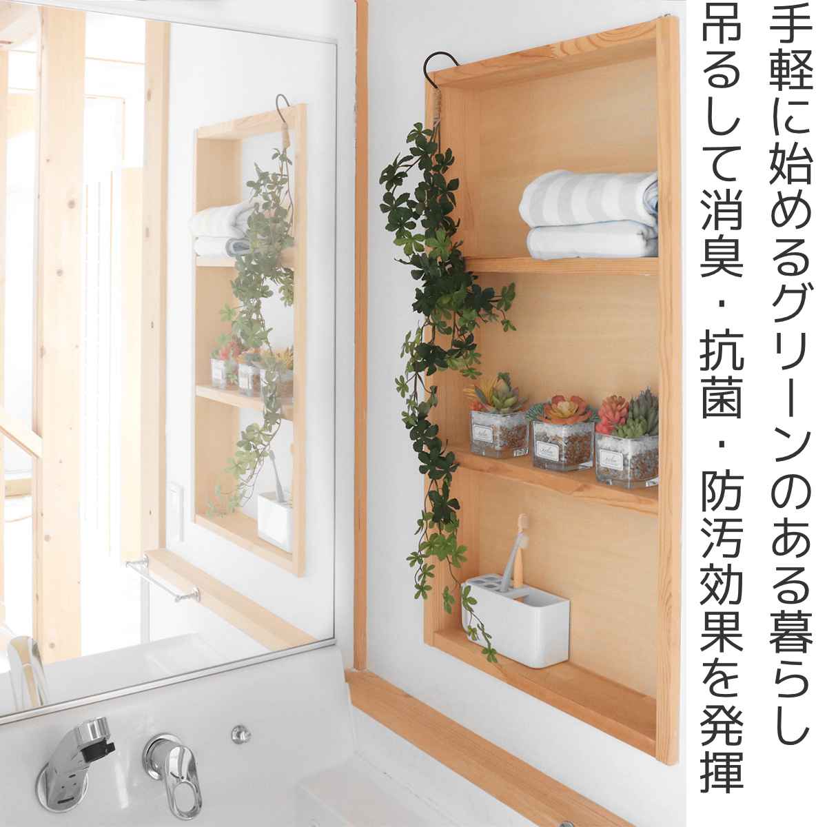 ●好きな場所に吊るせるフック付きのフェイクグリーンです。