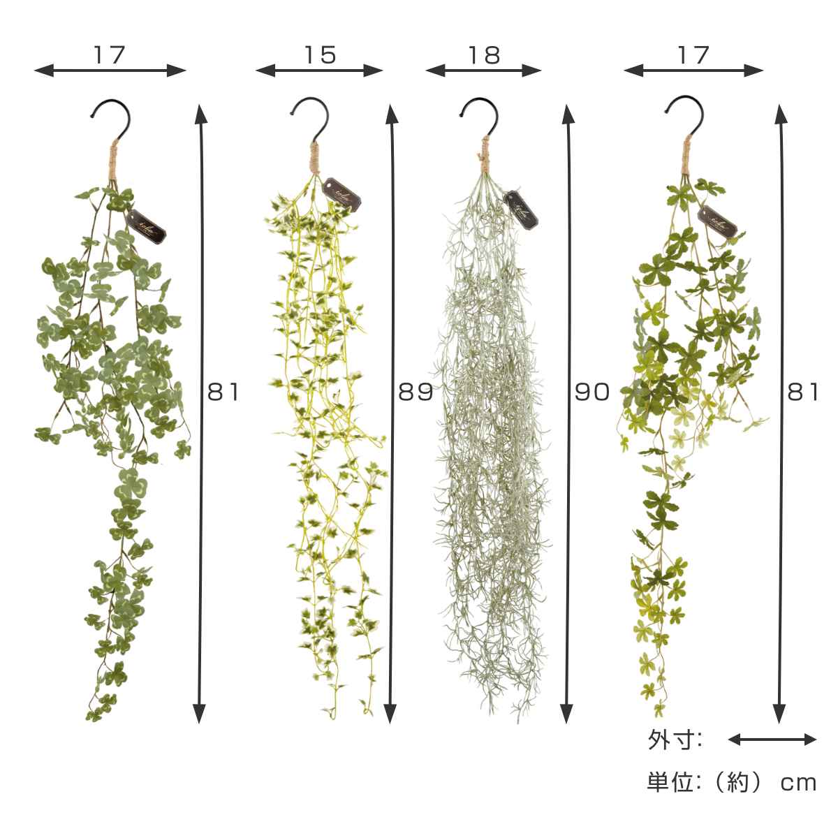 種類/クローバー、アイビー、スパニッシュモス、シュガーバイン