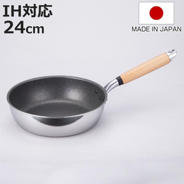 フライパン 24cm 深型 IH対応 極 ふかみ 日本製 ( ガス火対応 深型フライパン アルミ製 ふっ素樹脂加工 軽い )