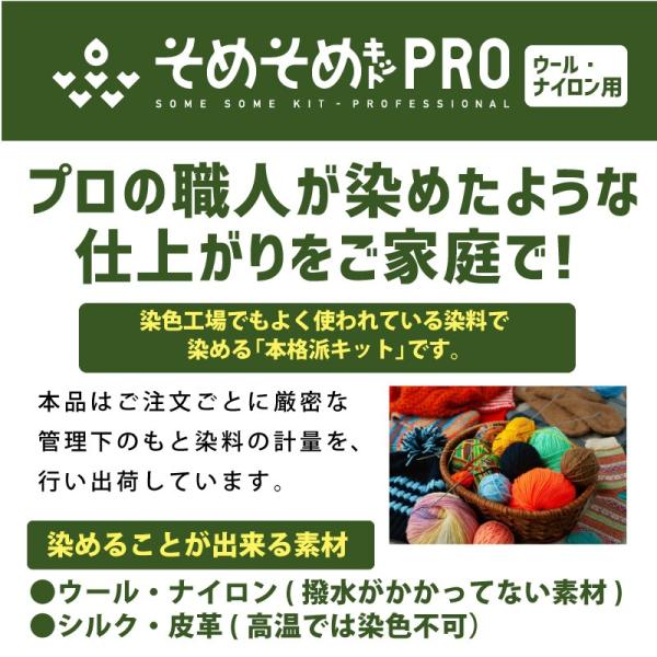 ウール・ナイロン繊維素材を染める染料キット(羊毛・ナイロン用の染め粉) | そめそめキットPRO (ウール・ナイロン用)