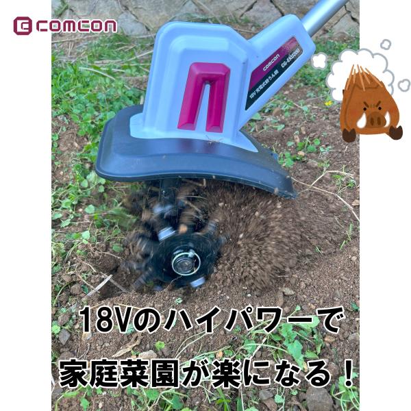 【 バッテリー 2台 セット 】 comcon 充電式 耕運機 コードレス 18V 家庭用 手動 小型 CG-EKU200 ミニ 電動 耕耘機 耕うん機 管理機 家庭菜園 コンパクト 軽量