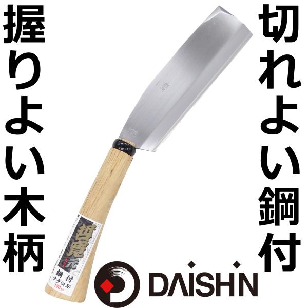 哲寛 鋼付ナタ片刃 180MM 大進 なた 鉈 キャンプ 園芸 ガーデニング 農業 女性 庭 農作業 家庭菜園 用具 工具 アウトドア サバイバル
