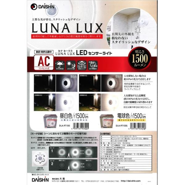 人感 センサーライト コンセント式 屋外用 防犯ライト 大進 DLA-17T200 LED AC 100V 電源 外灯 外 防水規格 防雨型