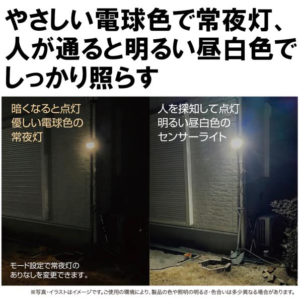 ・モード切り替え設定:OFF/センサーライトのみ/センサーライト+常夜灯