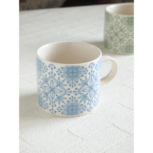 マグカップ おしゃれ 北欧雑貨 フラワーモザイク マグカップ ブルー&ホワイト 北欧 アンティーク調
