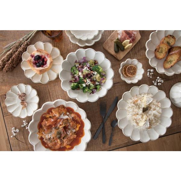 花が咲いたようなやわらかな輪花のかたちと、ほんのりヴィンテージ感のある風合いが魅力です。