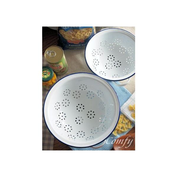 ホーロー雑貨 ホーロー コランダー S ざる ホワイト× ネイビー 琺瑯 北欧雑貨 カントリー雑貨 キッチン雑貨 ナチュラル雑貨
