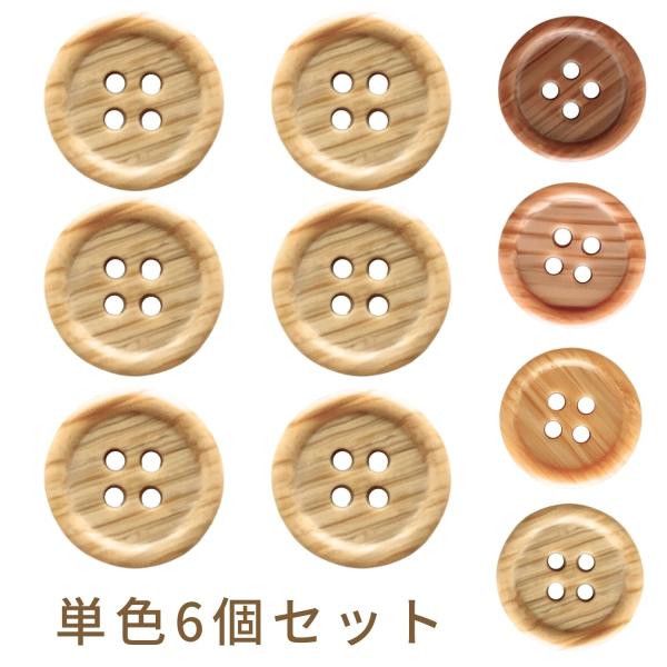 haoa ボタン 6個セット 直径 15mm 18mm 20mm 4つ穴ボタン 木目調 木製ボタン調 スーツボタン 樹脂ボタン 艶あり 洋裁 洋服 手芸 クラフト