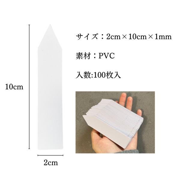 PVC製で防水、変形しにくく、耐紫外線があるので、長く使えます。油性ペンで植物の名前を書き、セルトレイや育苗ポット、植木鉢、庭の温室、苗床、畑等の土に刺しておくとわかりやすく管理できます。両面記入可能なので片面には名前、反対の面には播種日・定植日、もしくは苗の購入日などを記録することもでき、使い方は自由で便利です。