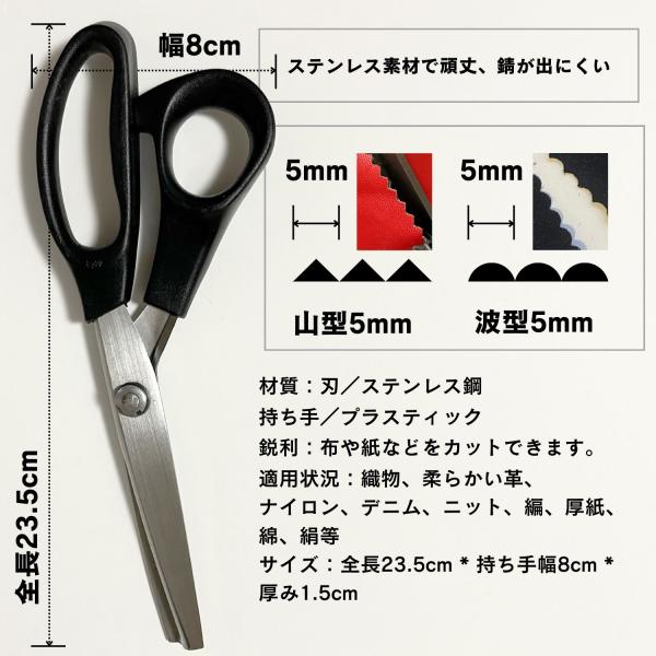 【ギザギザカット/なみなみカット】紙用、布用、色々な素材に利用できるピンキングはさみです。カットするだけで断面がギザギザ/なみなみに!