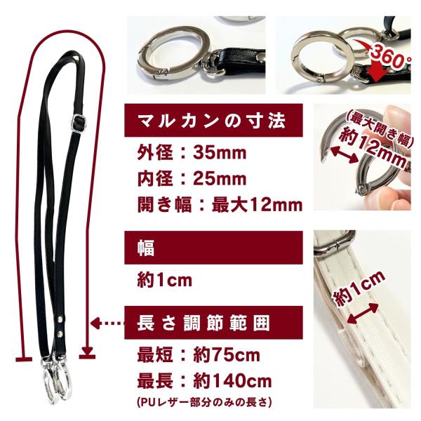 haoa ショルダーストラップ 細幅 1.0cm幅 ポーチ用 肩紐 合皮 レザー風 バック紐 フェイクレザー 斜めがけ 幅10mm 最短約75cm 最長約140cm 長さ調節可能
