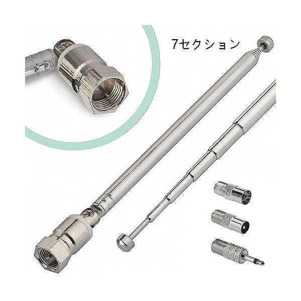 LIKENNY FMアンテナ ラジオ伸縮アンテナ 7節 75CM F型 ネジ式端子 ポータブルラジオアンテナ用 7MM 3種変換コネクタ付き 携帯型 ホームステレオレシ