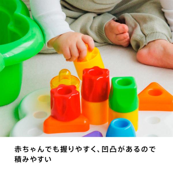 握りやすく積み重ねやすい、1歳頃の手遊びにぴったりのブロックです。