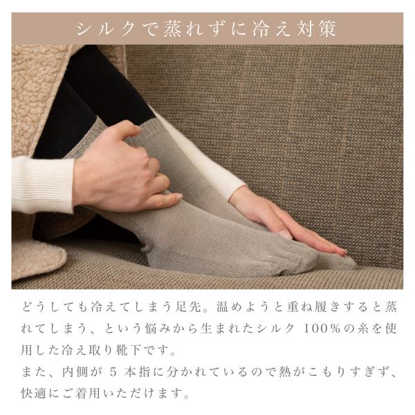 シルク 冷え取り 5本指 靴下 日本製 シルク100%糸 くつ下 ソックス 絹 五本指 レディース おやすみ 寝る時 就寝時 温かい 絹 冷えとり